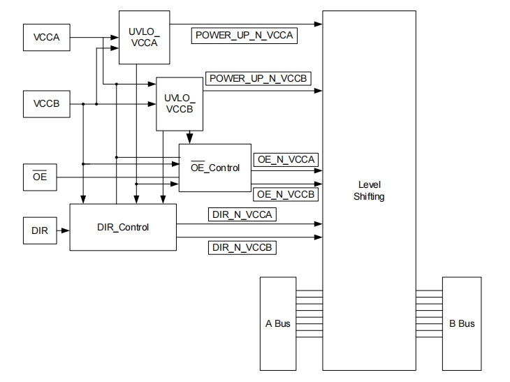 • 控制输入(DIR和OE)VIH和VIL电平以VCCA为基准